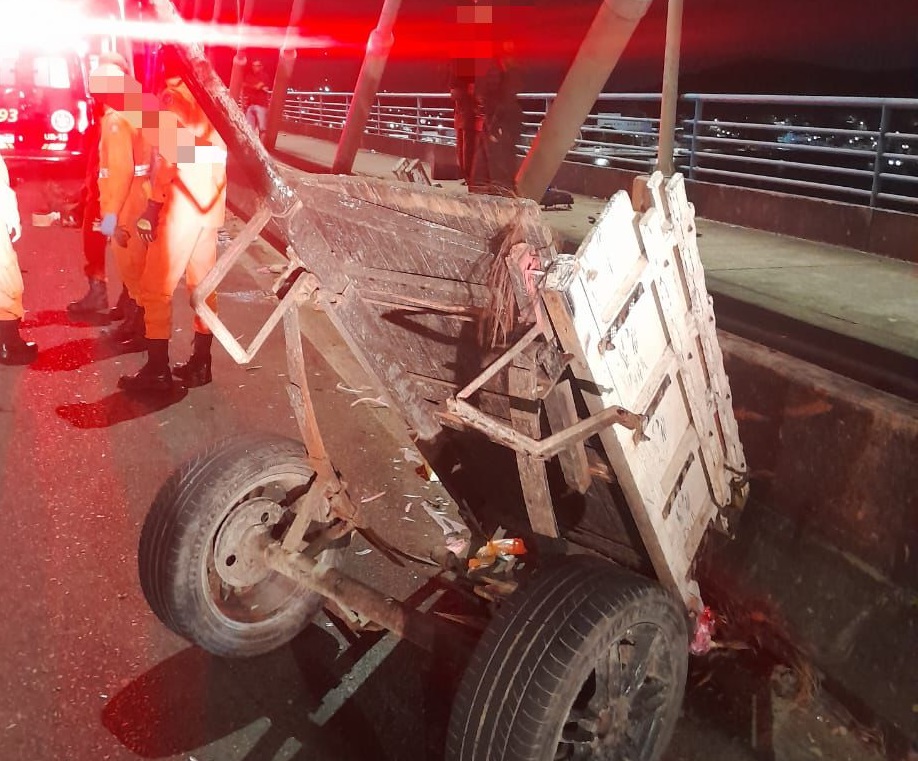 Três pessoas ficaram feridas em um acidente envolvendo um carro e uma carroça de tração animal na madrugada deste domingo (19), na Ponte Construtor João Alves, que liga Aracaju à Barra dos Coqueiros.