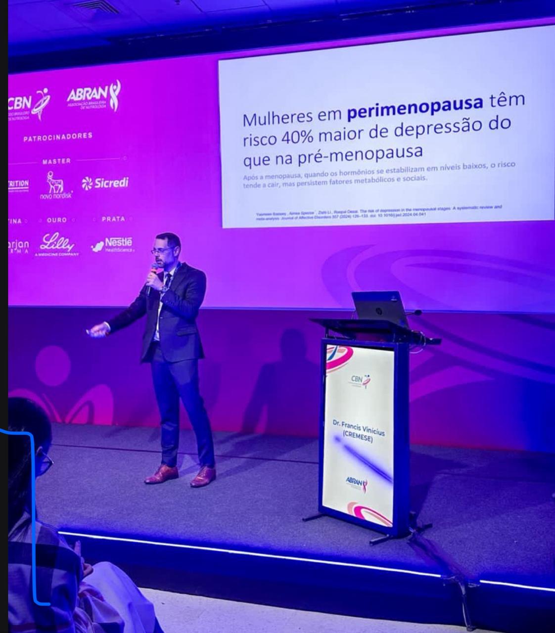 O competente nutrólogo, Dr. Francis Vinícius esteve presente no Congresso Brasileiro de Nutrologia — um dos maiores congressos do mundo na área — realizado nos últimos dias 25 a 28 de setembro em São Paulo. Na ocasião, o médico ministrou uma palestra sobre os impactos da nutrologia na qualidade de vida da mulher durante a menopausa, ressaltando a relevância de uma alimentação equilibrada e da reposição de nutrientes para aliviar os sintomas e promoção do bem-estar. Com ampla experiência na área, o Dr. Francis Vinícius é graduado em Medicina pela Universidade Federal de Sergipe, possui especialização em nutrologia pela Associação Brasileira de Nutrologia (Abran), é mestre em Cirurgia pela Universidade Federal de Pernambuco e atua como coordenador da Câmara Técnica de Nutrologia do Conselho Regional de Medicina de Sergipe (CRM-SE).