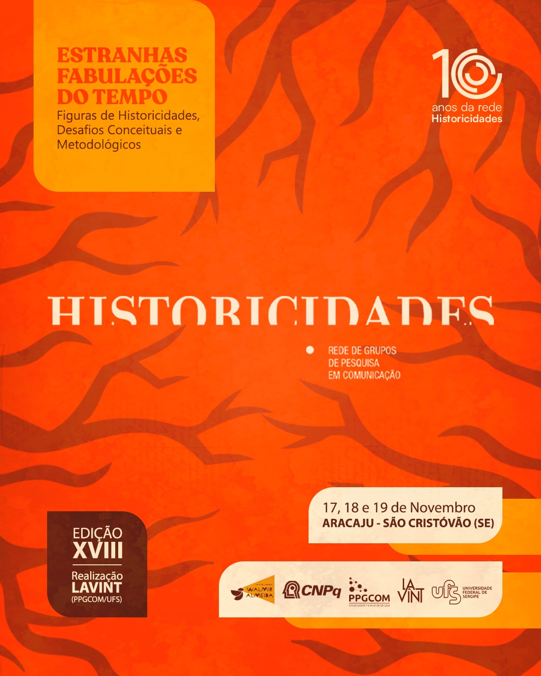 Entre os dias 17 e 19 de novembro de 2025, o Programa de Pós-Graduação em Comunicação da Universidade Federal de Sergipe (PPGCOM/UFS) e o Grupo de Pesquisa Laboratório de Análise de Visualidades, Narrativas e Tecnologias (LAVINT) realizam o 18º Encontro da Rede Historicidades dos Processos Comunicacionais, reunindo pesquisadores de vários locais do país. O evento conta com apoio do Conselho Nacional de Desenvolvimento Científico e Tecnológico (CNPq), da Coordenação de Aperfeiçoamento de Pessoal de Nível Superior (CAPES) e da Sala Walmir Almeida.