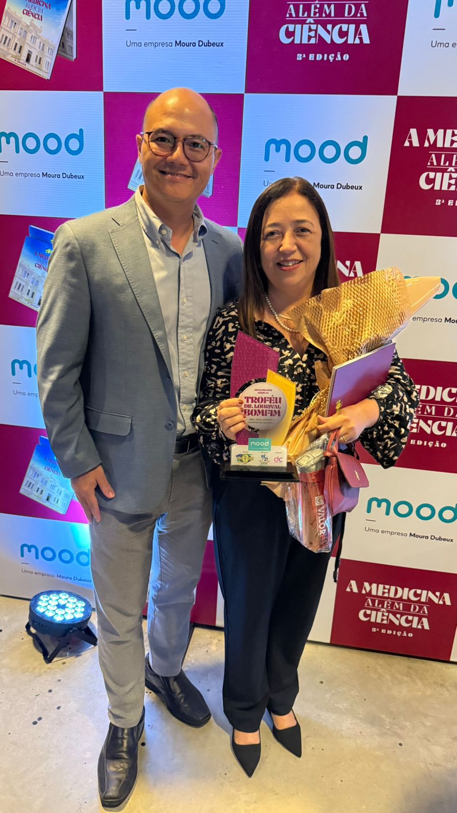 A infectologista Rísia Cristina Santos de Oliveira, do Hospital São Lucas Rede D’Or, foi uma das homenageadas durante a 3ª edição do projeto “A Medicina Além da Ciência”, realizada na última terça-feira, dia 14 de outubro, no Memorial de Sergipe Prof. Jouberto Uchôa. O evento, promovido pela SOBRAMES/SE com apoio da Academia de Medicina de Sergipe, reuniu cerca de 200 convidados e celebrou médicos que se destacam pela ética, liderança e compromisso humanístico. A noite contou ainda com o lançamento de livros e a entrega de troféus a profissionais e jovens talentos. Dra. Rísia recebeu o troféu Dr. Lourival Bomfim, na categoria Humanidades Médicas. Na foto, a médica ao lado do diretor regional da rede D’Or, Fábio Massao.