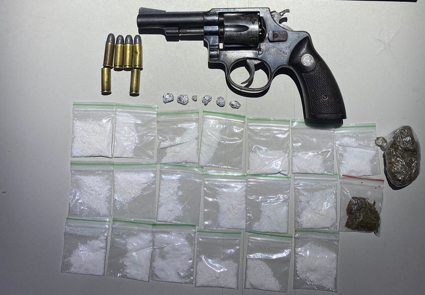 SUSPEITOForça-tarefa apreendeu arma e entorpecentes.