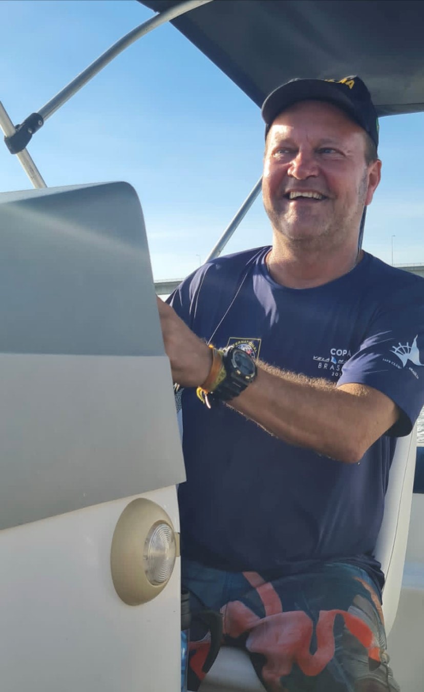 O que te faz feliz num dia de sol? Estar com minha família na praia ou navegando.
